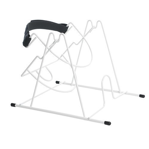 Made of wire frame with cradle. It holds most kettles and pivots on raised wire frame by gentle pressure on the handle to pour into the cup. The kettle sits in the cradle and is secured by strap.