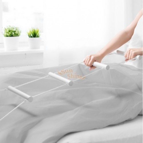 Tie ends of cord around the bed legs and use ladder to pull up to a sitting position.