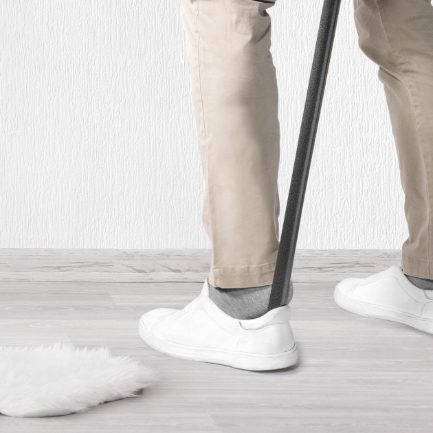 PRODUCT DA-5112 Extra Long Shoehorn ● Size / 610 x 30mm ● Weight / 140g Description This extra long shoehorn has a non-slip vinyl handle and nylon storage loop, at 61cm in length. It is ideal for people who have difficulty bending down. Back