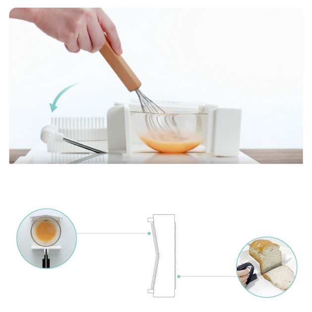 The Food Workstation is a multifunctional food prep aid specifically designed for one-handed users. It supports a variety of daily kitchen tasks, promoting independence and ease of use.