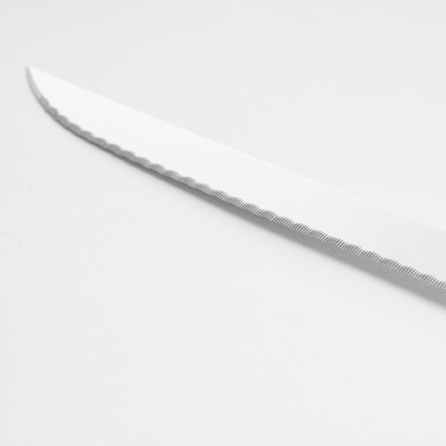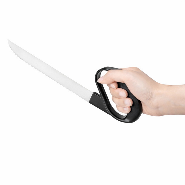 PRODUCT HA-4192 Slicing Knife ● Overall Length: 289 mm ● Blade Length: 1206 mm ● Weight: 112 g ● Household dishwasher safe up to 70℃ Description The Slicing Knife is an adaptive knife designed to allow users to cut food easily. The angled handle relieves stress in the user’s wrist during cutting motions. Back