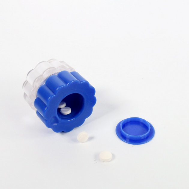 PRODUCT HA-4132 Tablet Crusher ● Dia / 55mm ● Height / 44mm ● Weight / 71g ● DO NOT use in the dishwasher. ● DO NOT use UV light to disinfect the product. Description A grind mill for medicines. Turn the screw top to crush the tablets into powder. Spare tablets can be stored in a compartment in the lid. Suitable for carrying in pocket and easy to clean. Back