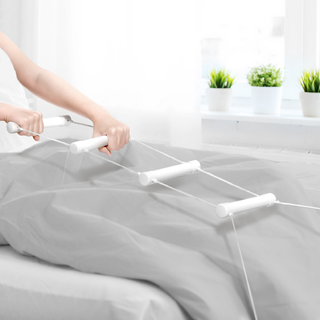 PRODUCT HA-4508 Bed Rope Ladder ● Bar Dia / 25mm ● Bar Length / 195mm ● Weight / 193g ● Max. Load Weight / 70kgs Description Tie ends of cord around the bed legs and use ladder to pull up to a sitting position. Suitable for use in single or double beds. Back