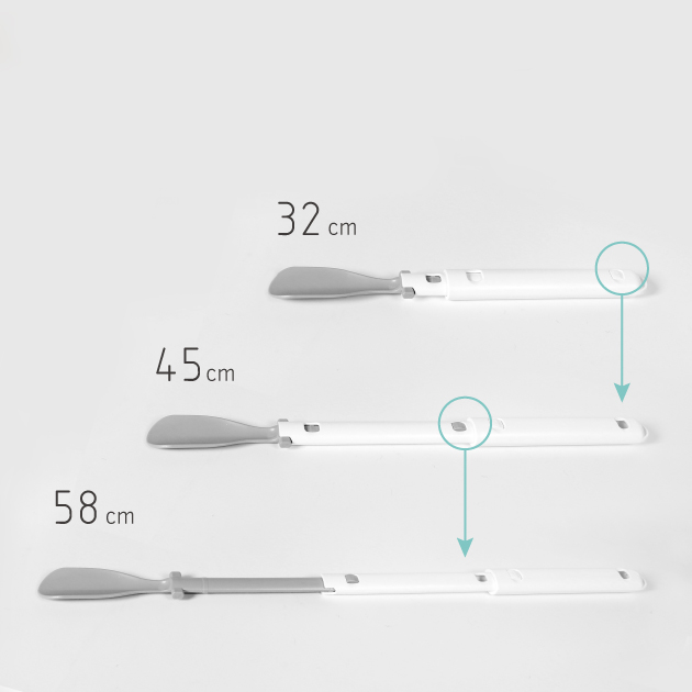 PRODUCT DA-5113 Extendable Shoehorn ● Length / 32cm to 58cm ● Weight / 122g Description The Handy Extendable Shoehorn is small and convenient to take with you when travelling. It can be extended from 32cm to 58cm. Back