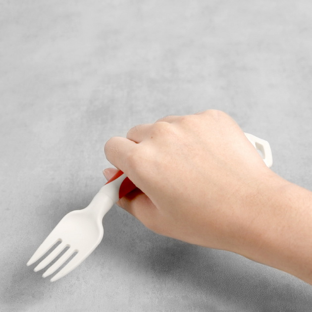 The Curved Fork is an adaptive utensil designed to assist users in eating independently. Its unique curved design reduces wrist movement during meals. The ergonomic, non-slip handle makes it easier to grip.