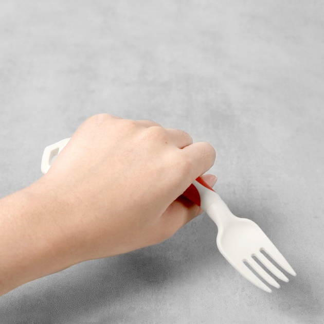 The Curved Fork is an adaptive utensil designed to assist users in eating independently. Its unique curved design reduces wrist movement during meals. The ergonomic, non-slip handle makes it easier to grip.