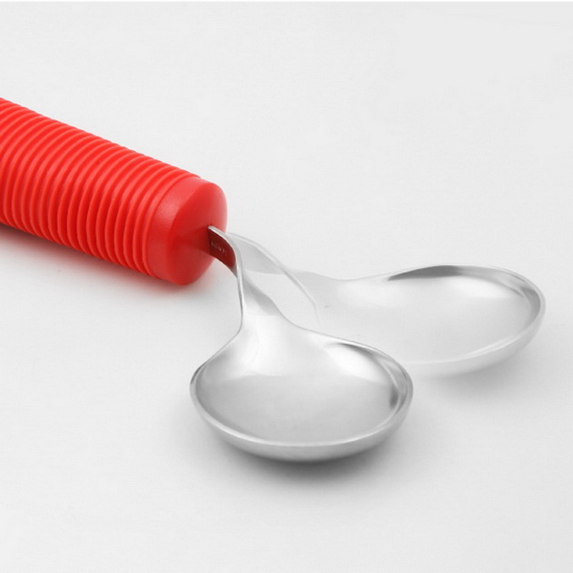 The Bendable Soup Spoon is an adaptive utensil designed for users to eat independently. The wide and soft handle provides a comfortable grip, and the spoon can be bent to preferred angle up to 90°.
