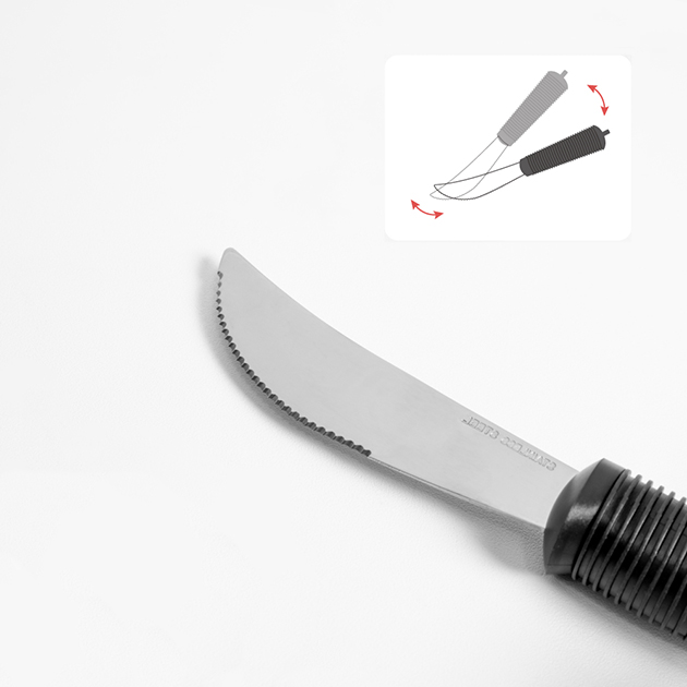 The Serrated Rocker Knife is designed to support independent eating.